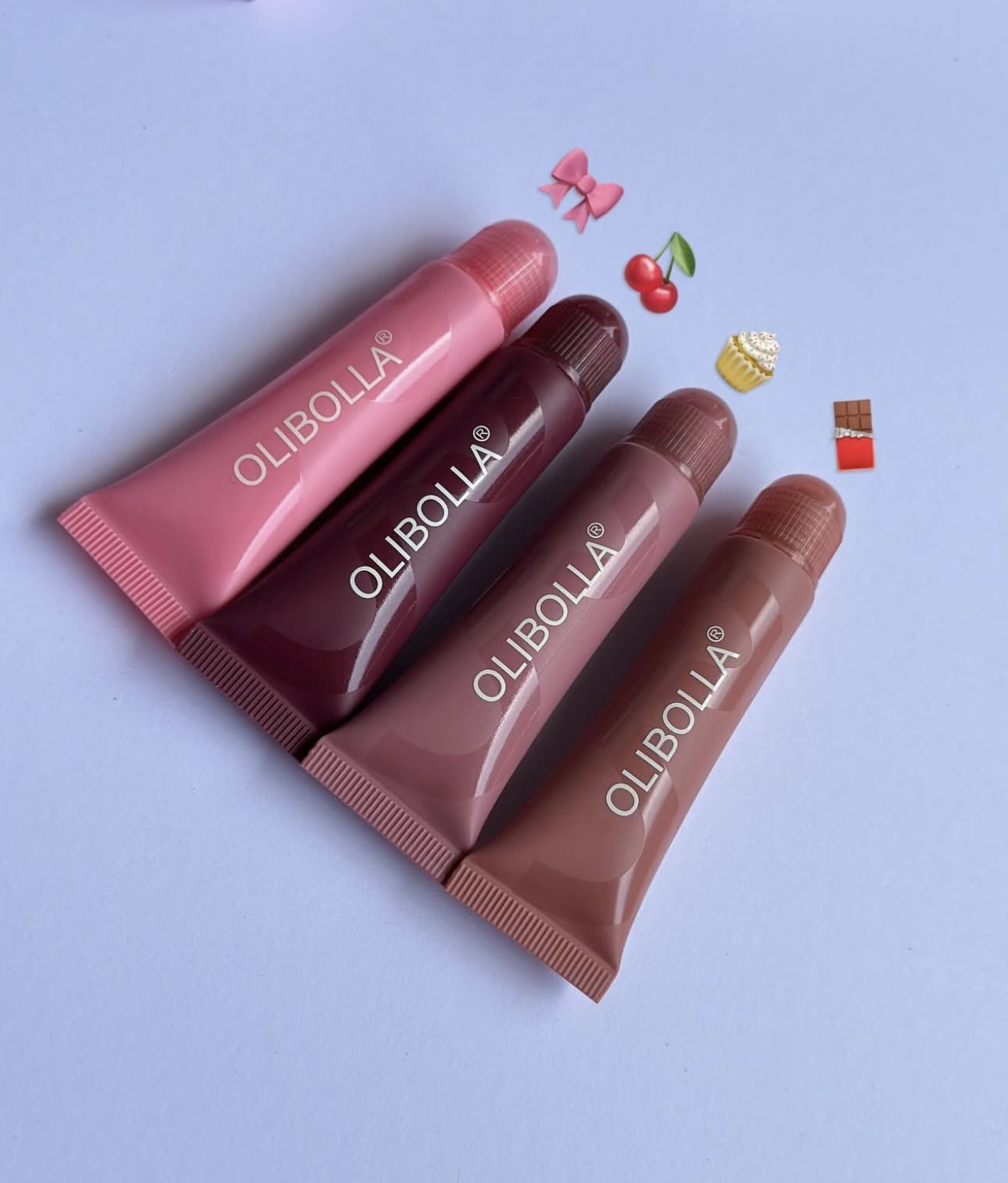 💄 لیپ گلاس تیوپی ژلهای Olibolla دارای پگیجینگ جذاب🍯 بافت ژلهای شفاف، سبک و بدون چسبندگی🎨 در ۴ رنگ کاربردی: شکوفه گیلاس، کرم صورتی، شیر نسکافه، قرمز آجری